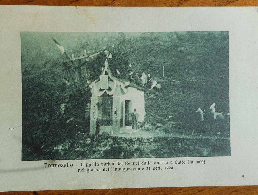 La prima foto riguarda la Cappella che quasi un secolo fa era presente a Lut (Lutto) nel giorno dell'inaugurazione il 21 settembre 1924, come spesso accadeva inizialmente si realizzava una Cappella, poi nei tempi successivi veniva magari ampliata, e infine si costruiva un Oratorio o una Chiesa; la seconda foto risale al 1922 ed era il giorno della festa all'Oratorio di San Bernardo a Biogno.