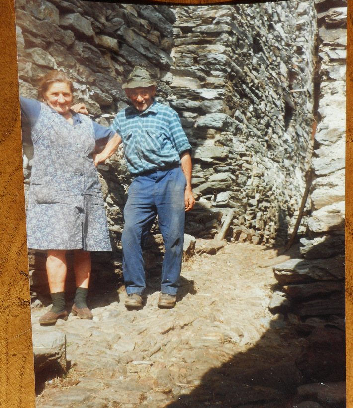 E poi una bella immagine di Elia e Luisa Pella a Sastermi (Sasso Termine) nel 1993, il Lia aveva trascorso una vita in Valgrande, una vita di fatiche e di disagi come era stato per suo padre e suo nonno (il nonno aveva il suo stesso nome); in una occasione il papà del Lia (il Pep du Lia) dovette portare fuori dalla Valgrande il genitore malato uscendo in Val Vigezzo, trasportandolo a spalla nel scivròn... oggi la Valgrande è vista e vissuta in un altro modo, quasi un "parco dei divertimenti" per gli escursionisti, ma la "vera" Valgrande era un'altra cosa... e credo sia giusto riproporre quanto già scritto nella pagina della Vegia dul Balm :