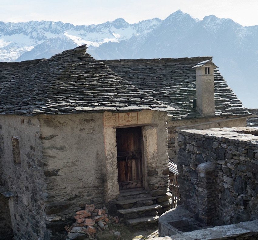 Cà d'Tamunin) con la sua caratteristica architrave con incise, oltre alla grande Croce centrale, a sinistra una Croce doppia e a destra una insolita incudine che dovrebbe richiamare i